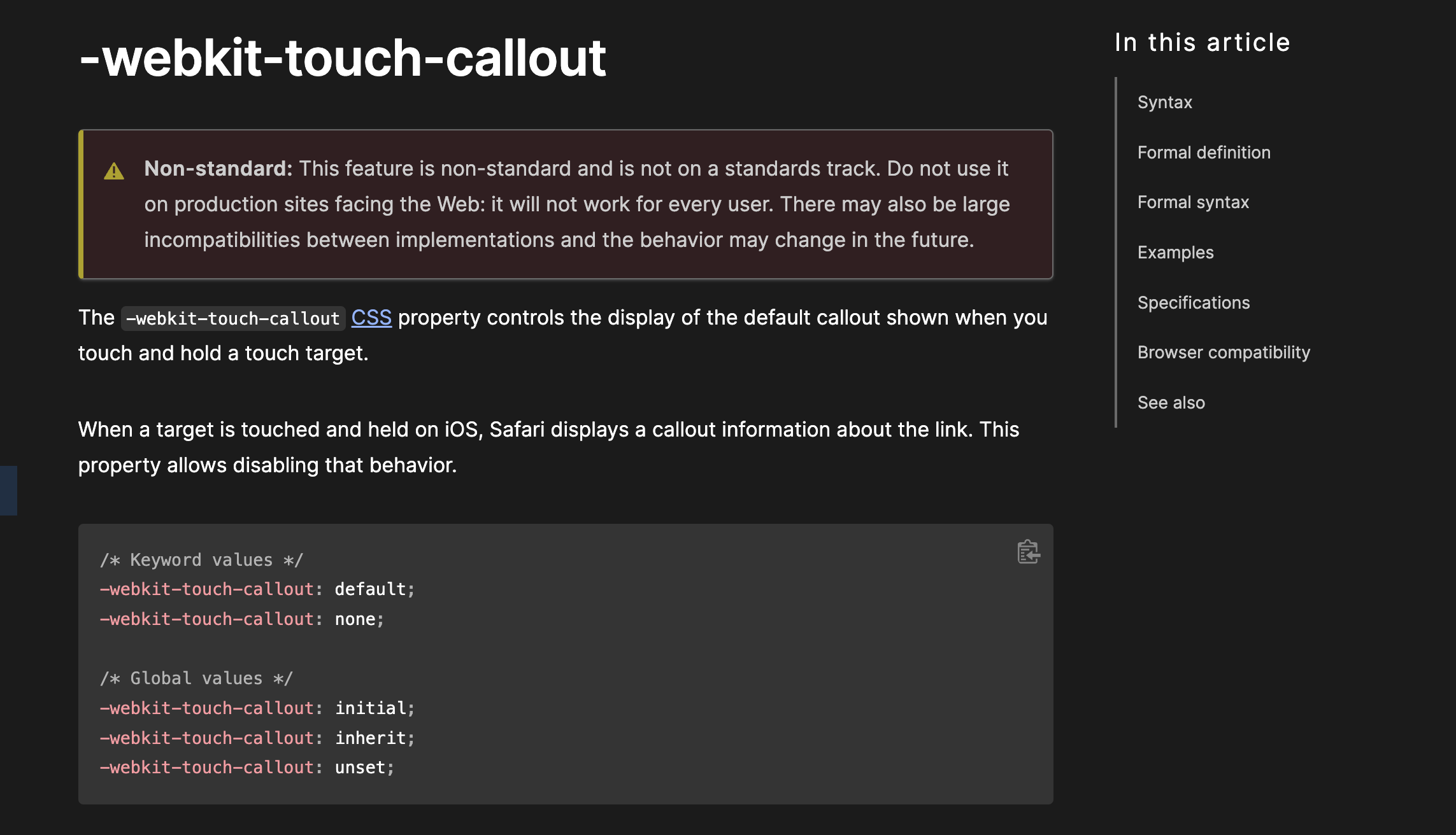 -webkit-touch-callout - CSS: Cascading Style Sheets | MDN