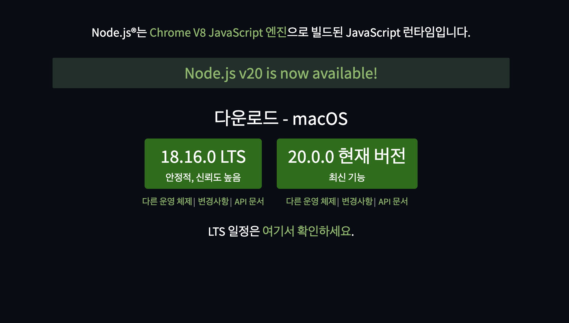 Node.js는 크롬 V8JavaScript엔진으로 빌드된 자바스크립트 런타임으로 JavaScript 개발을 위해서는 거의 필수로 설치해야 하는 툴입니다. 다음 사이트를 방문에서 직접 설치해도 되지만 brew를 이용해서 설치하는 방법을 알아보겠습니다.