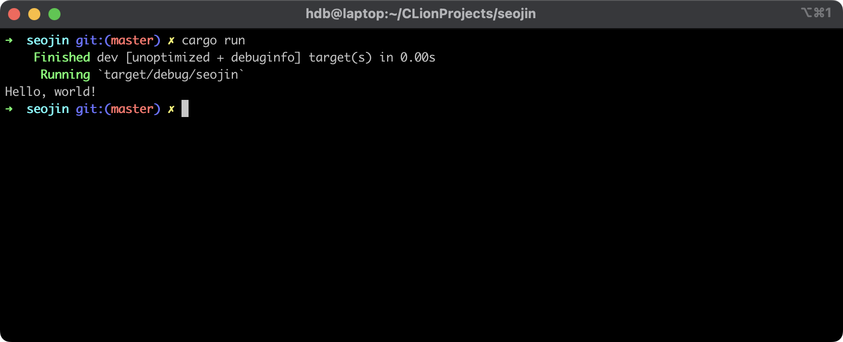 ▼ cargo run 명령을 통해 빌드와 동시에 프로그램을 실행할 수 있습니다.