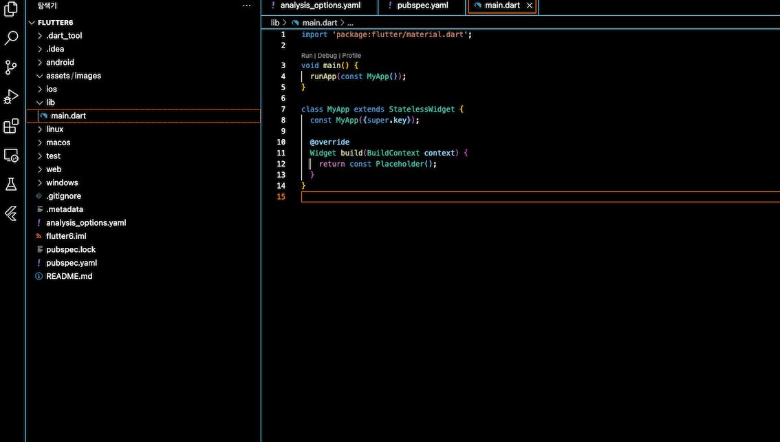 플러터를 설치하면 몇 가지 해줘야 하는 것들이 있습니다. 특히 처음 설치하면 main.dart 파일이 복잡하게 구현되어 있는데 이 부분부터 정리해보겠습니다.