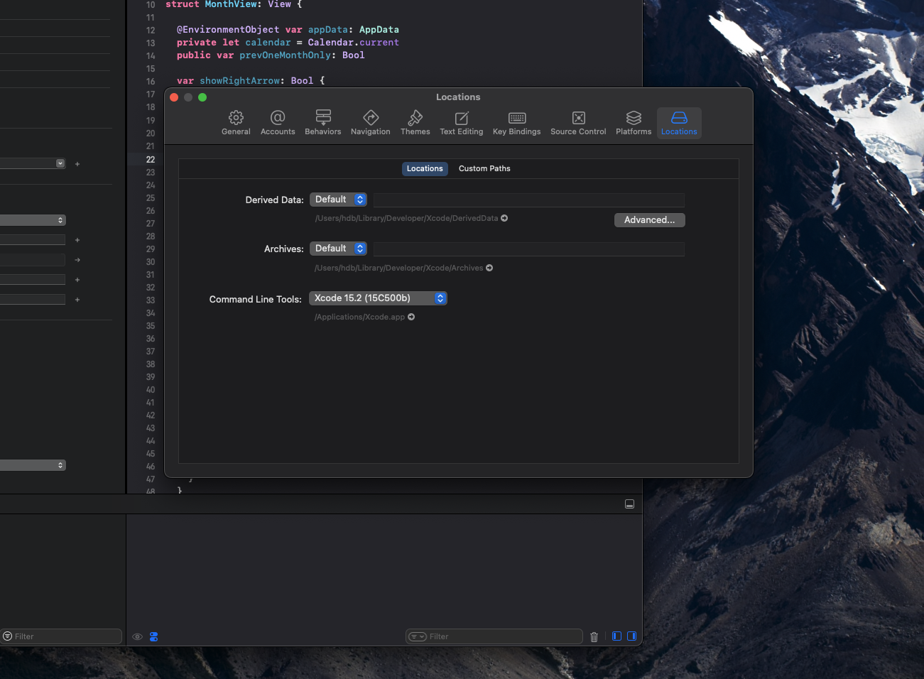 Xcode의 특정 프로젝트에 문제가 생기면 항상하는 일이 있습니다. DerivedData 를 삭제하는 일입니다. 관련이 없을지는 모르니 이 데이터를 한 번 지워보는 것을 추천합니다. 경로 옆에 화살표를 누르면 해당 폴더로 이동하는데 안에 있는 파일을 모두 지워줍니다.
