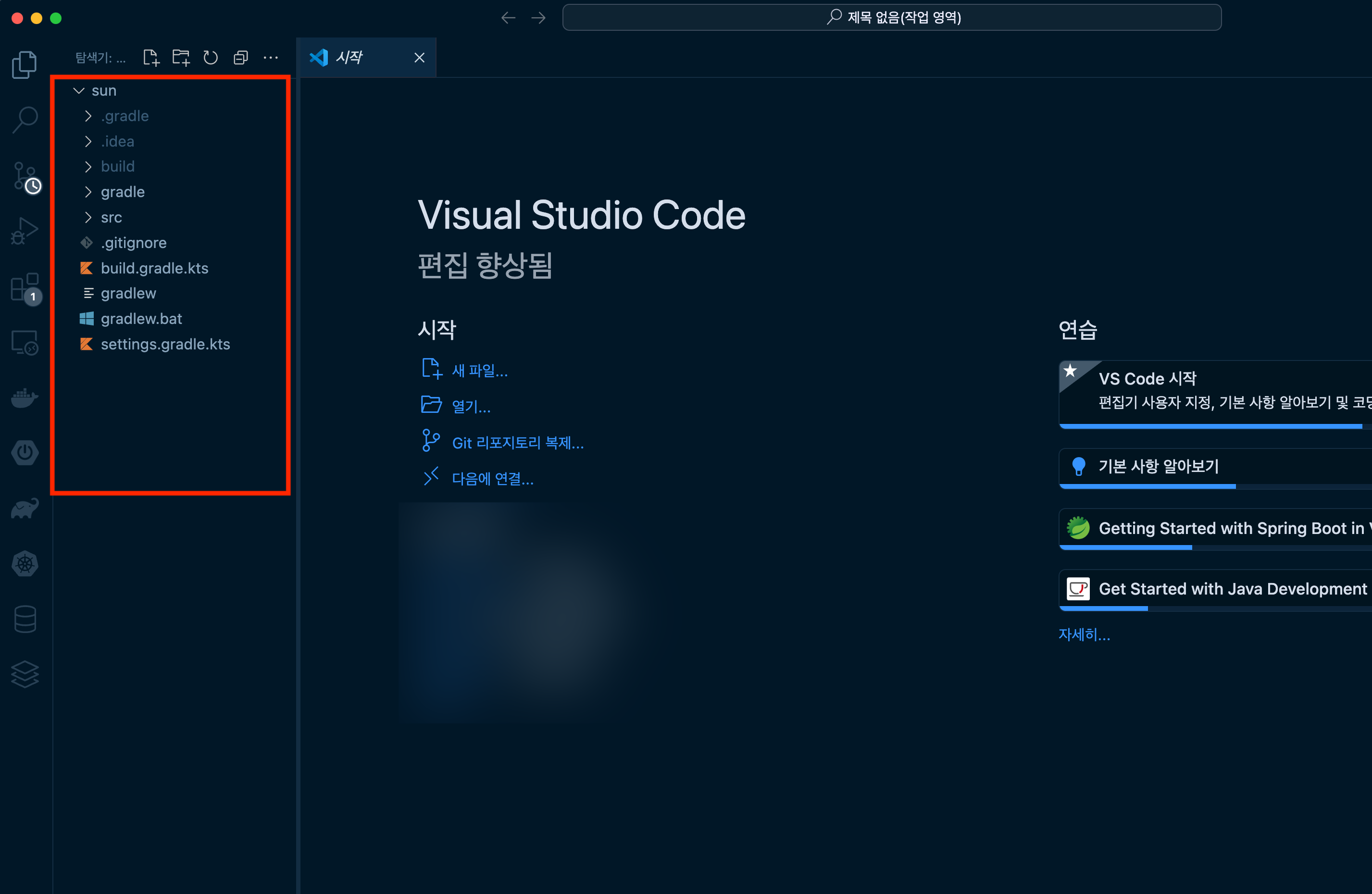 ▼ 이제 파일을 저장하면 다음과 같은 아이콘의 파일을 확인할 수 있습니다. 이제부터는 프로젝트를 시작히기 위해서 폴더를 여는게 아니라 저장된 워크스페이스 파일을 열기만 해도 프로젝트를 바로 접근할 수 있습니다.