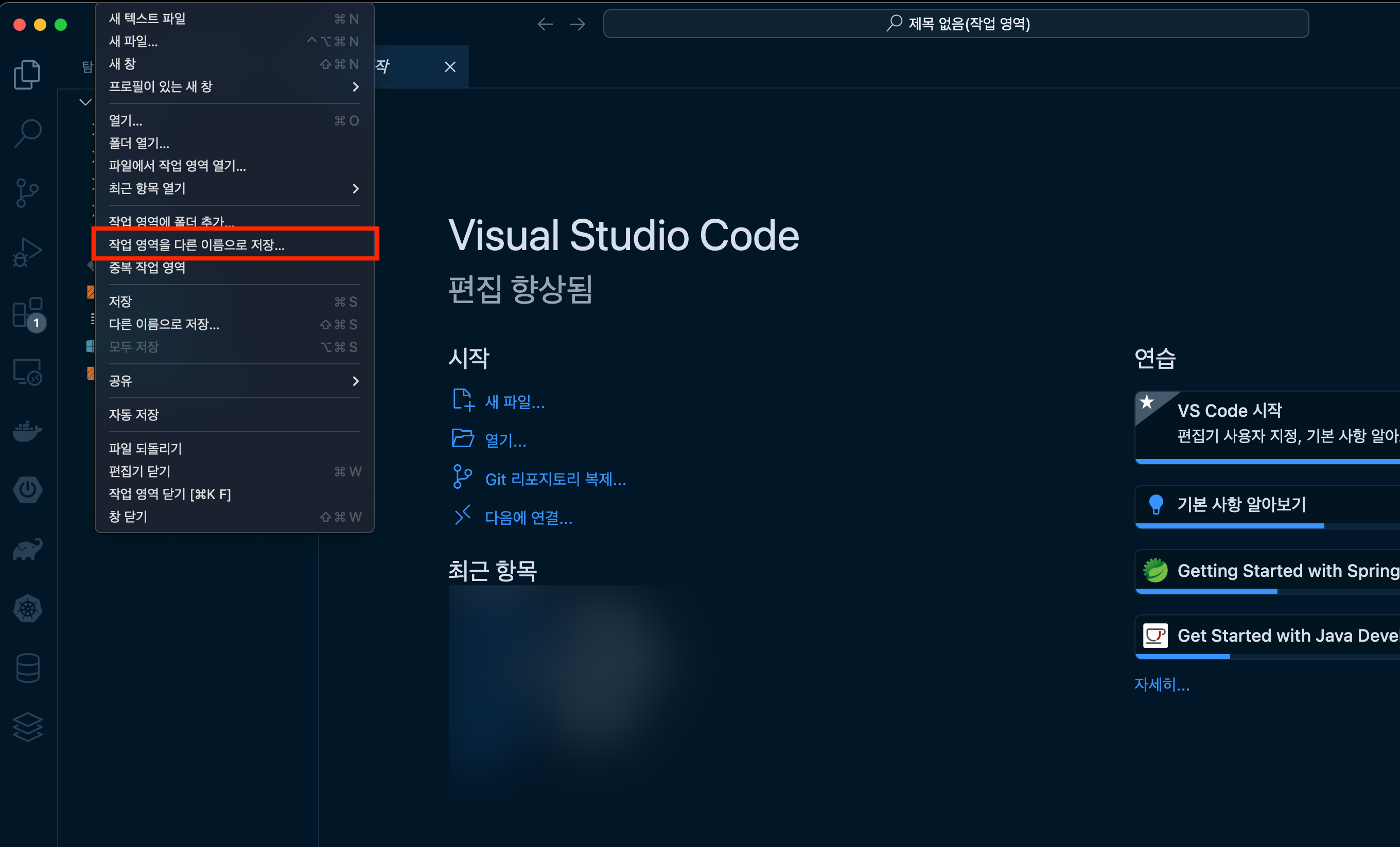 [VS Code] 비주얼 스튜디오 코드 워크스페이스 생성하는 방법