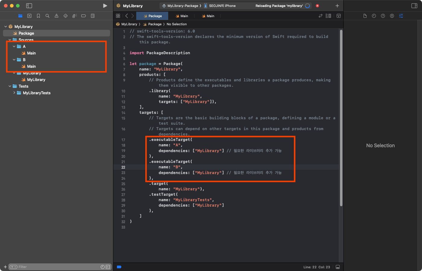 ▼ 7. @main 함수를 만들어서 실행 가능한 타깃을 Package.swift 에 명시합니다.