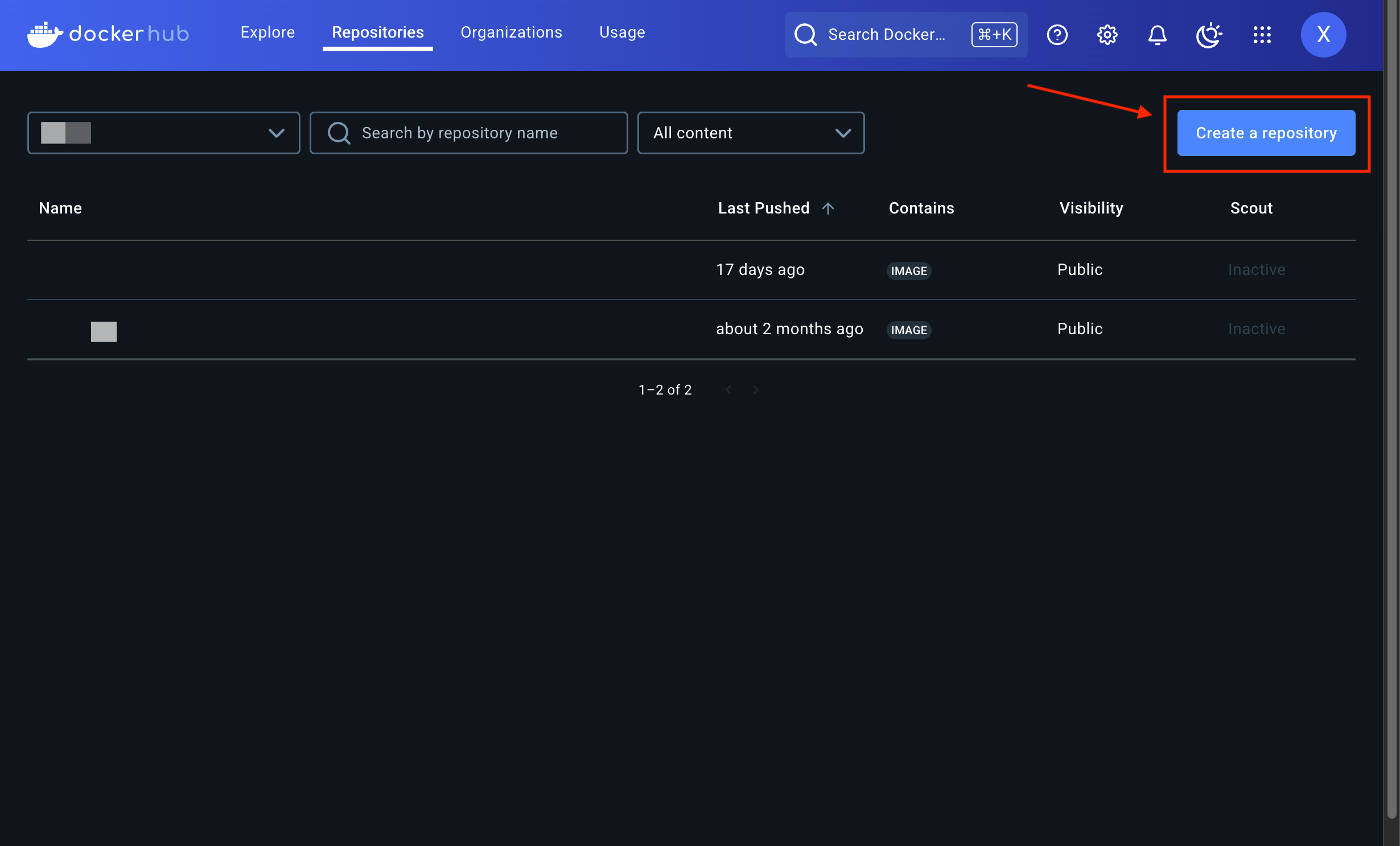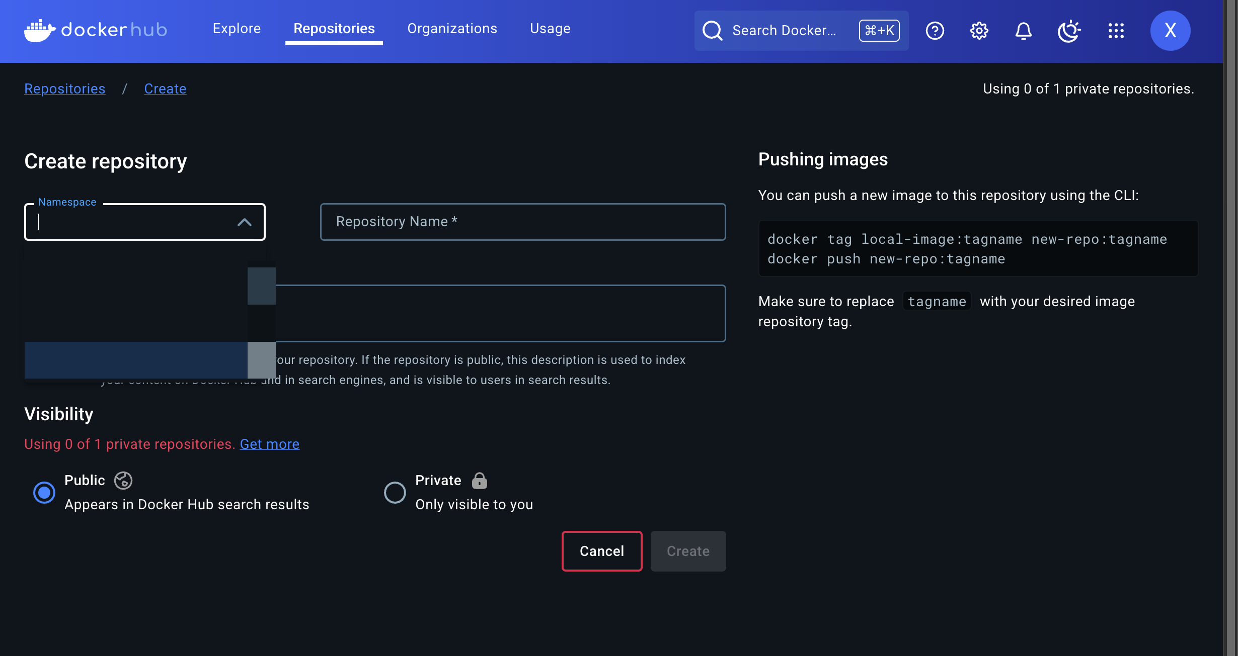 도커로 이미지를 푸시하려면 hub.docker.com 에서 할 수 있습니다. Private 레포지토리는 1개로 제한되어 있고 Public 레포지토리는 개수의 제한은 없지만 빌드 자동화가 불가능하며 Pull 에 대한 제한이 있을 수 있습니다.