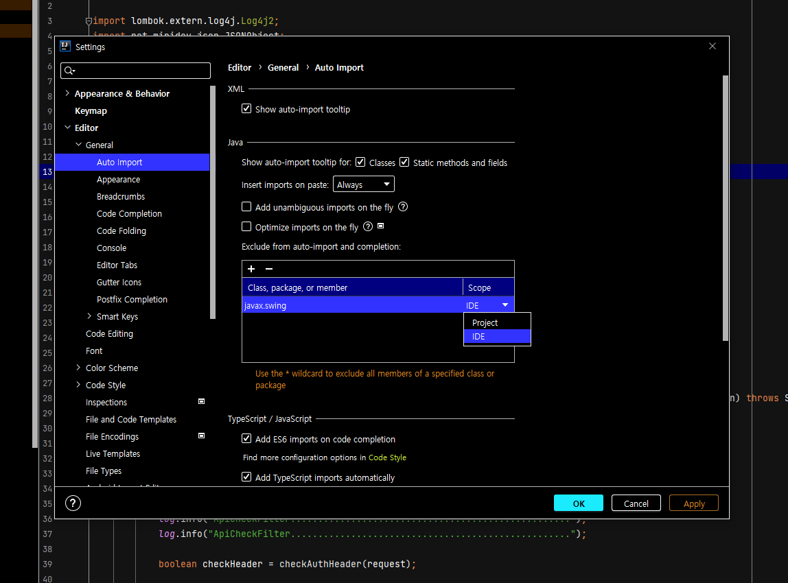 [IntelliJ] 인텔리제이 특정 import 코드 자동완성 제외하기