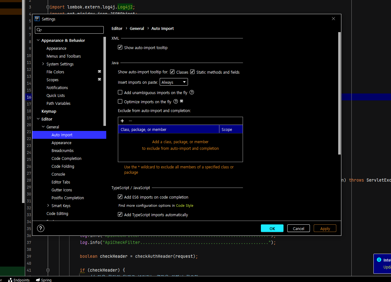 [IntelliJ] 인텔리제이 특정 import 코드 자동완성 제외하기