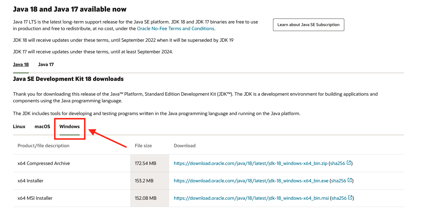 윈도우즈의 경우에는 다음과 같이 Windows 탭을 선택해서 해당 OS 버전에 맞는 설치 프로그램을 다운로드 받습니다. 리눅스나 맥 OS 의경우 압축파일로 제공하며 윈도우는 설치파일이 있어서 설치하기 편리합니다.