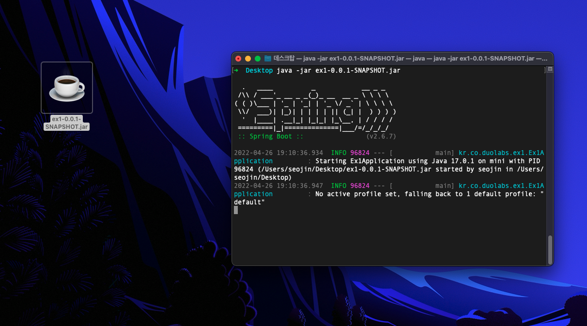 ▼ 터미널을 열고 jar 파일을 다음 명령어로 실행시킵니다.
