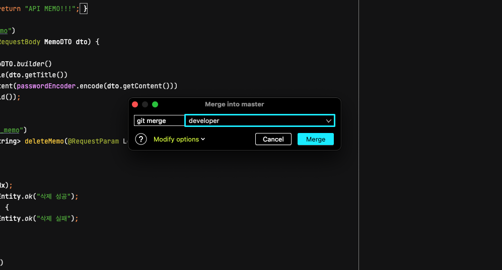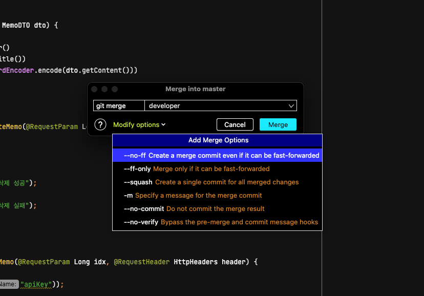 [IntelliJ IDEA] 인텔리제이 git merge branch 하는 방법