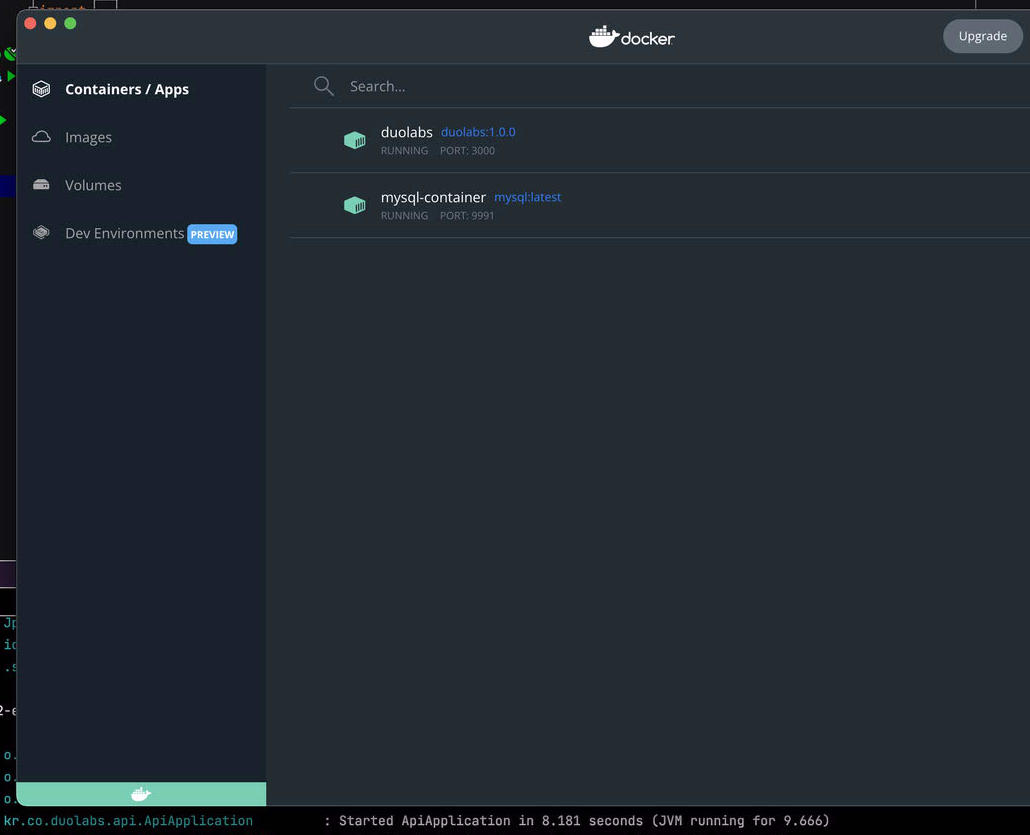 ▼ 컨테이너가 잘 올라간 것을 확인할 수 있습니다. 만약 GUI 툴을 이용해서 컨테이너를 만든다면 바로 이전 단계의 과정은 필요 없습니다.