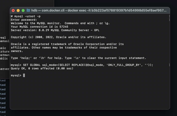 오래된 데이터베이스에서는 문제없이 동작하는 코드 였는데 새로운 MySQL 을 도커로 설치하고 실행하니 문제가 되어서 찾아보았습니다. only_full_group_by 옵션을 비활성화 하는 방법은 다음과 같습니다.
