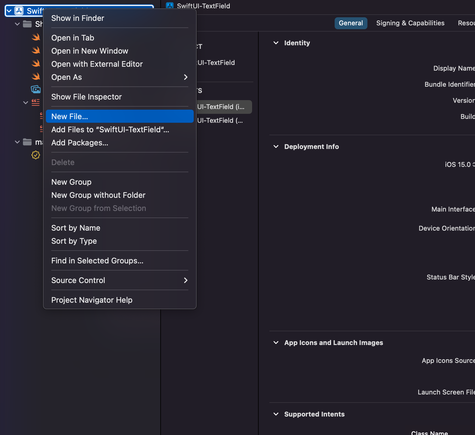 ▼ 우선 문자열 파일을 만들기 위해서 새로 파일을 하나 만듭니다. 프로젝트 파일을 오른쪽 버튼을 눌러서 New File... 버튼을 누릅니다.