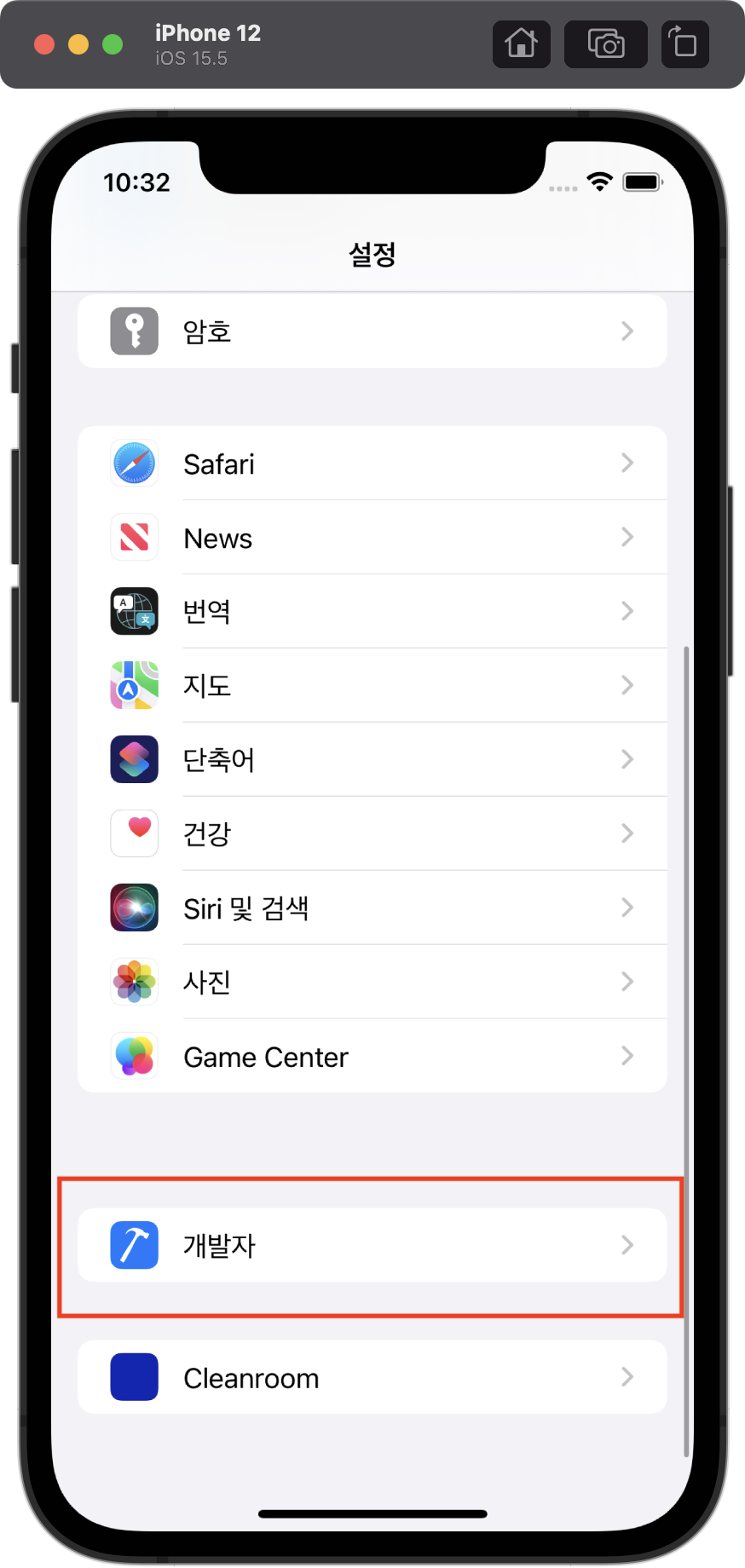 ▼ 시스템 설정 마지막 부분에 개발자 메뉴를 선택합니다.