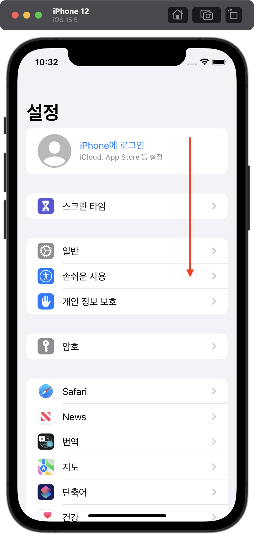 ▼ 설정화면에서 아래쪽으로 스크롤해줍니다.