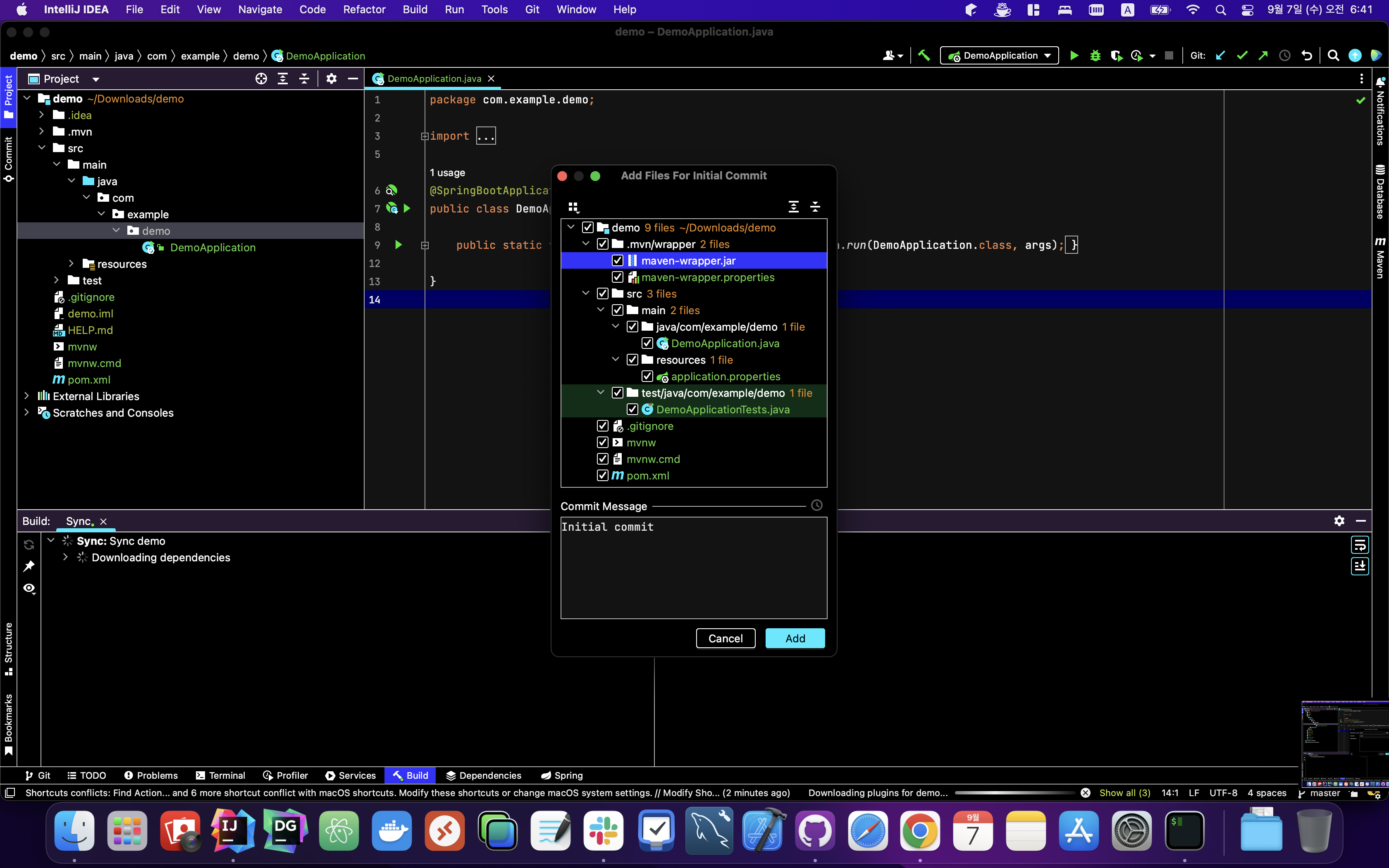 ▼ Share 버튼을 눌렀다면 다음 과같이 Add Files For Initial Commit 이라는 팝업을 볼 수 있습니다. 커밋 메시지와 함께 Add 버튼을 누르면 커밋이 완료됩니다.