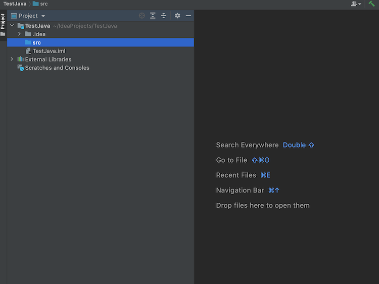 ▼ 하지만 단축키 ⌘ + 1 키를 눌러서 우선 포커스를 네비게이션 메뉴로 이동한 뒤 키보드 방향키를 이용해 src 폴더 이동하고 ⌘ + N 키를 눌른 후 Pac...을 입력해서 다음과 같이 생성이 가능합니다.
