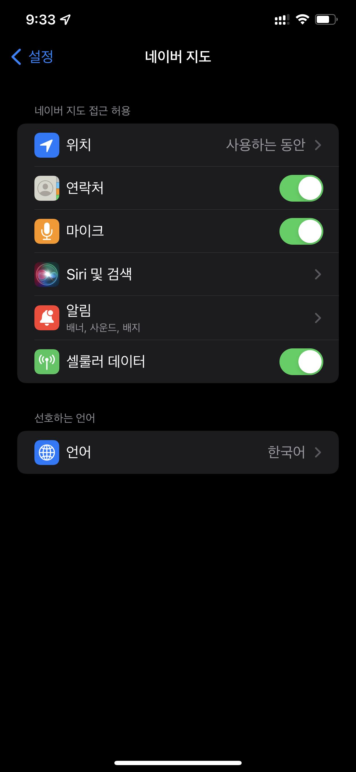 앱 시스템 설정 이동